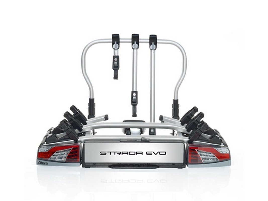 - Atera Strada Evo 3 zaskakuje fantastycznym designem i funkcjonalnością. Dzięki innowacyjnemu systemowi odchylania i odsuwania się, platforma idealnie sprawdza się przy autach z niestandardową,długą klapą. Pasuje do wielu rowerów, również do elektrycznych.