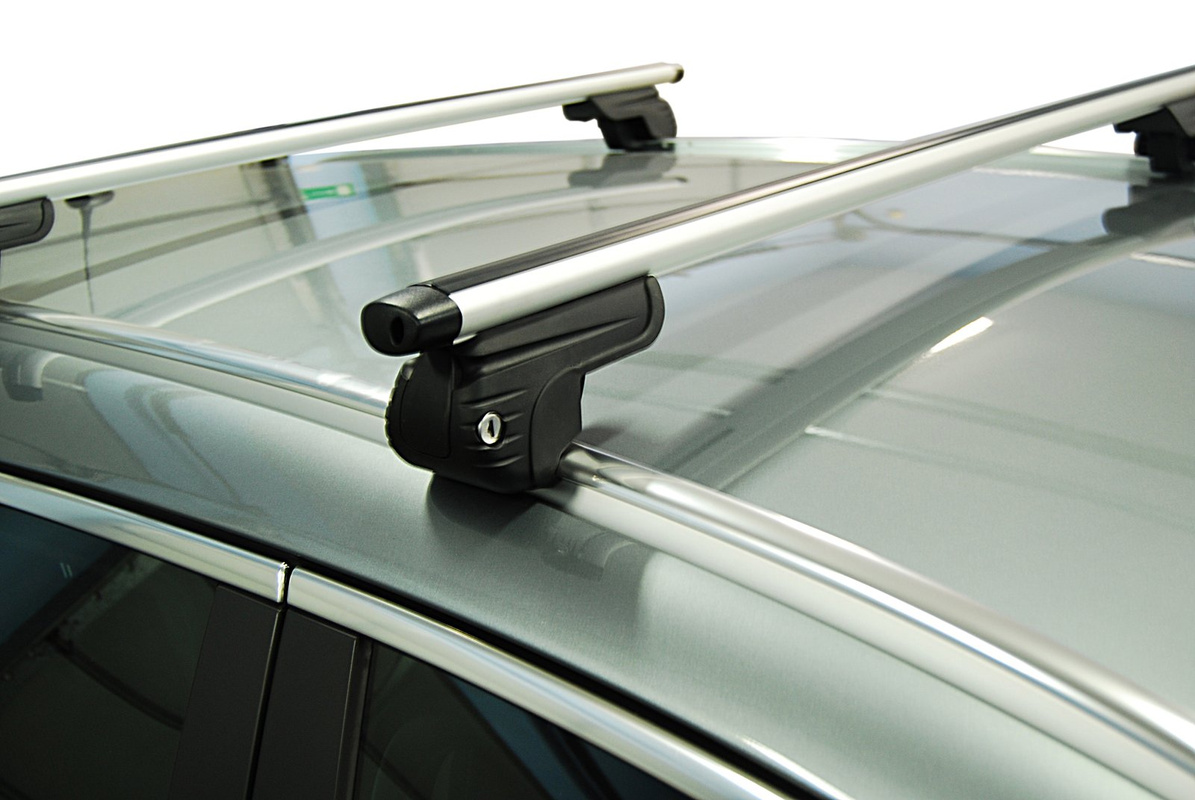 W zestawie znajdują się belki aluminiowe o długości 125 cm oraz 4 mocowania do dachu. Mocowania zaprojektowano tak, aby nie uszkadzały ani nie rysowały relingów.