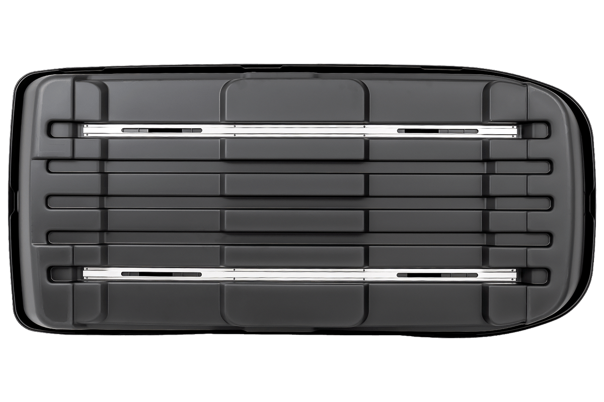 Tvar střešního boxu byl navržen tak, aby umožňoval přepravu co největšího množství zavazadel v rámci jeho vnitřních rozměrů ( délka 165 cm x výška 32 cm x šířka 72 cm) .