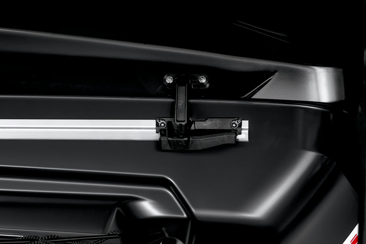 Montážní systém Rapid Fit zajišťuje rychlou, bezpečnou a snadnou instalaci boxu na střešní nosič. Pasuje na všechny typy tyčí : obdélníkové, oválné a křídlové.