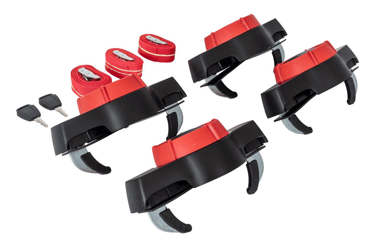 W zestawie znajdują się również paski tekstylne do zabezpieczenia bagażu (box Casar posiada dedykowane miejsca do przymocowania pasków).