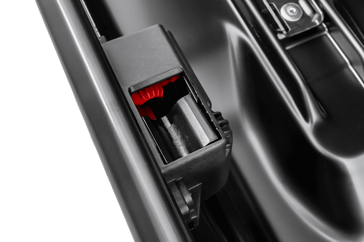 Mocowanie Premium Fit osadzone jest w prowadnicach pozwalających na dopasowanie się do rozstawu belek bagażnika dachowego, który musi znajdować się w zakresie od 55 cm do 95 cm.