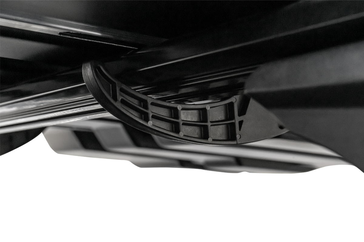 Montážní systém Rapid Fit zajišťuje rychlou, bezpečnou a snadnou instalaci boxu na střešní nosič. Pasuje na všechny typy tyčí : obdélníkové, oválné a křídlové.