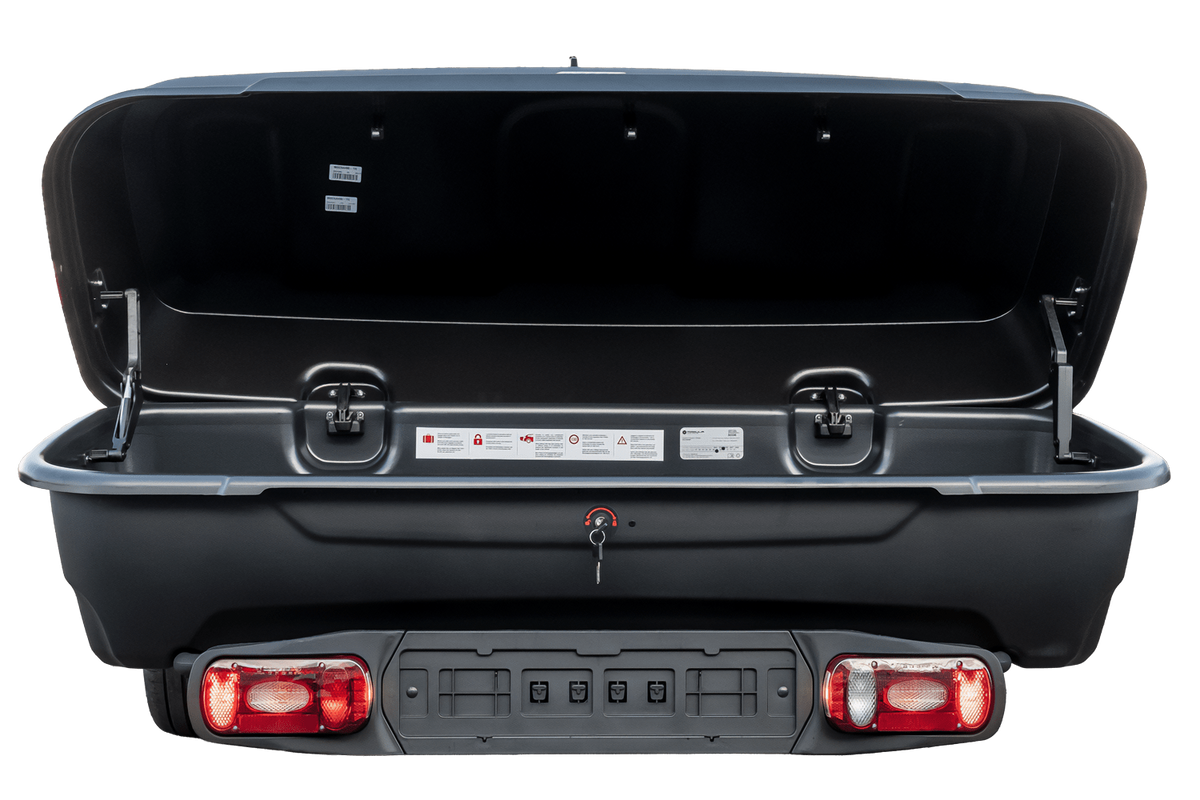 - Zestaw Re-cargo w którego skład wchodzi platforma na hak oraz box. Box umożliwia transport różnego rodzaju ładunków zarówno podczas letnich jak i zimowych podróży.