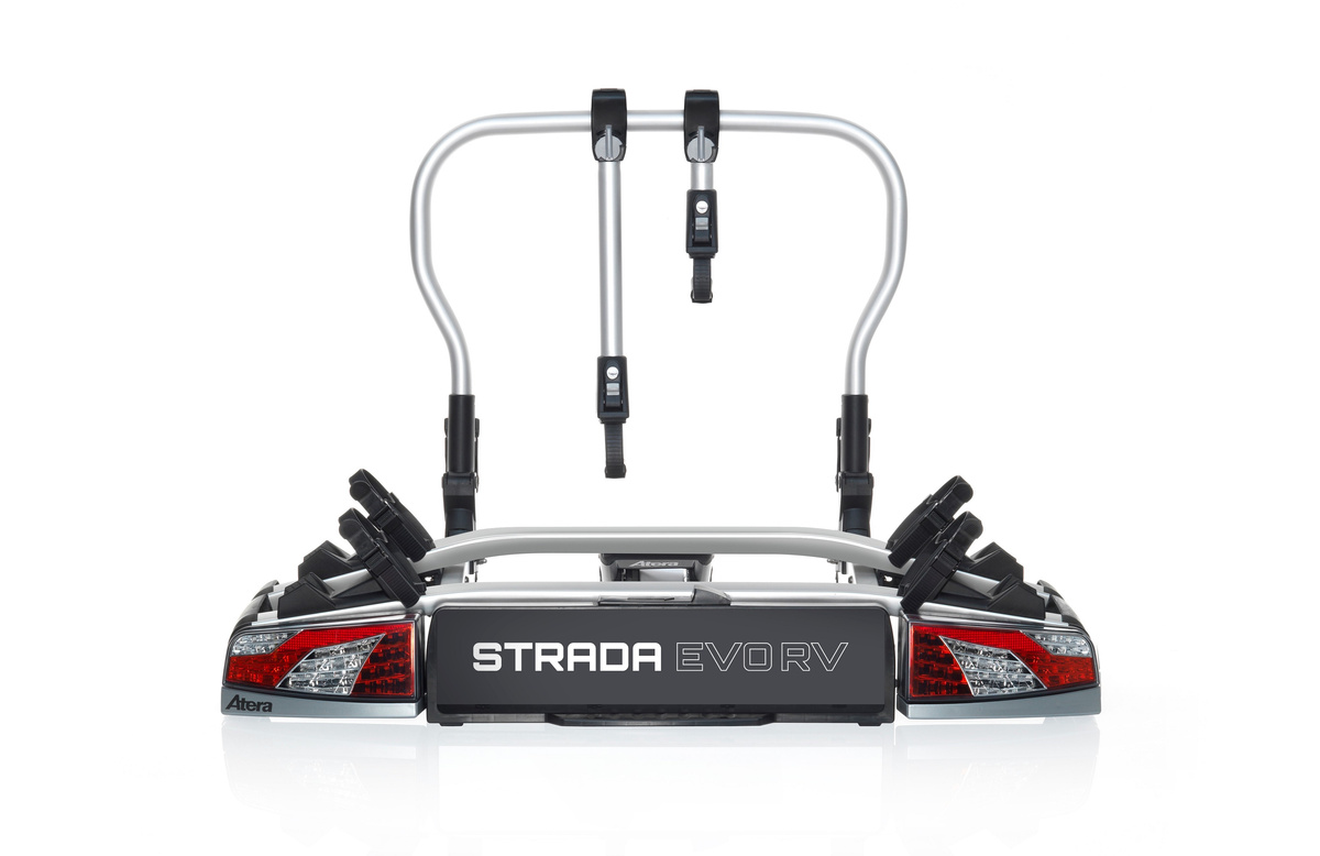 - Atera Strada EVO RV 2 to platforma dedykowana do kamperów lub innych pojazdów z klapą bagażnika otwieraną na boki. Tylne światła charakteryzują się nowoczesnym wyglądem i dobrą widocznością. Posiada możliwość rozbudowania do 3 rowerów.