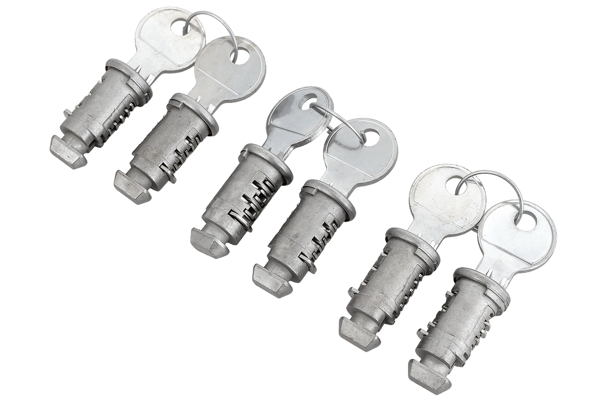 - Univerzální vložky s klíčem pro střešní nosiče, nosiče kol a lyží umožňují snadné nastavení zámku. Zajišťují bezpečnost a dlouhou životnost.