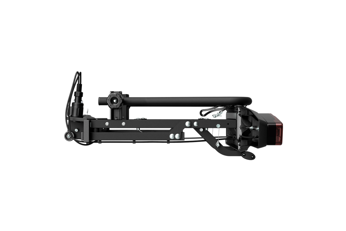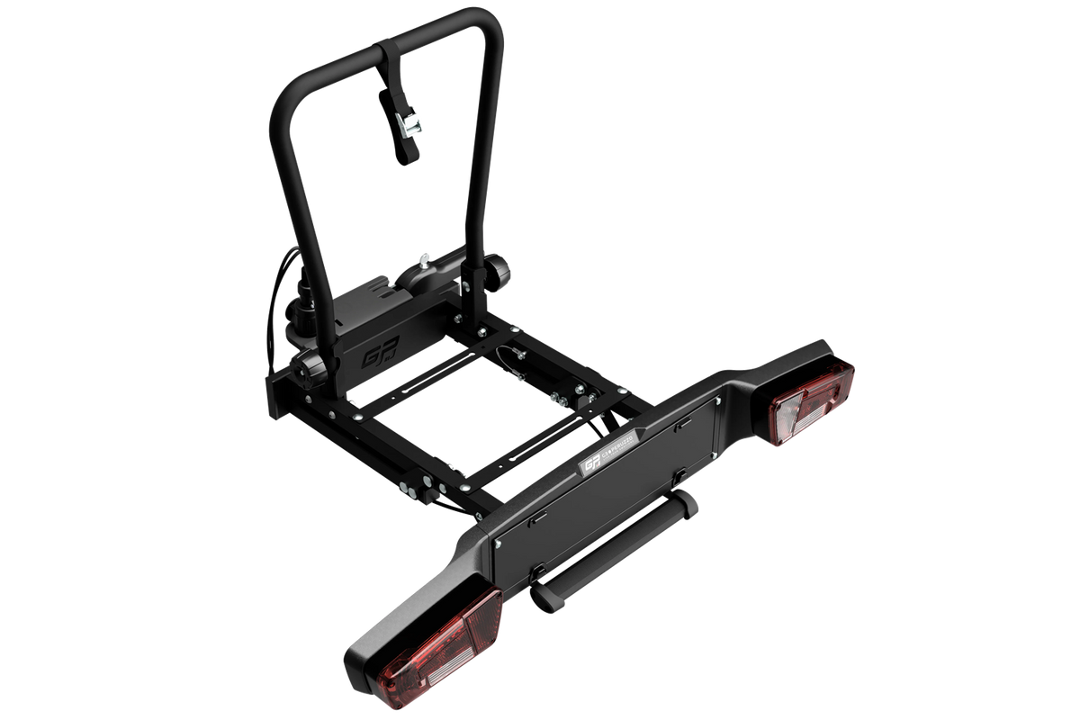 Wykonana z wytrzymałych materiałów konstrukcja nośna zapewnia udźwig do 60 kg, co pozwala na swobodny transport zwykłych bagaży lub nawet ciężkich e-bike’ów. Baza montowana jest do haka holowniczego pojazdu i wyposażona w certyfikowany system oświetlenia oraz tablicę rejestracyjną, zgodnie z europejskimi normami drogowymi. Dzięki temu zapewnia pełną widoczność pojazdu i bezpieczeństwo podczas jazdy.