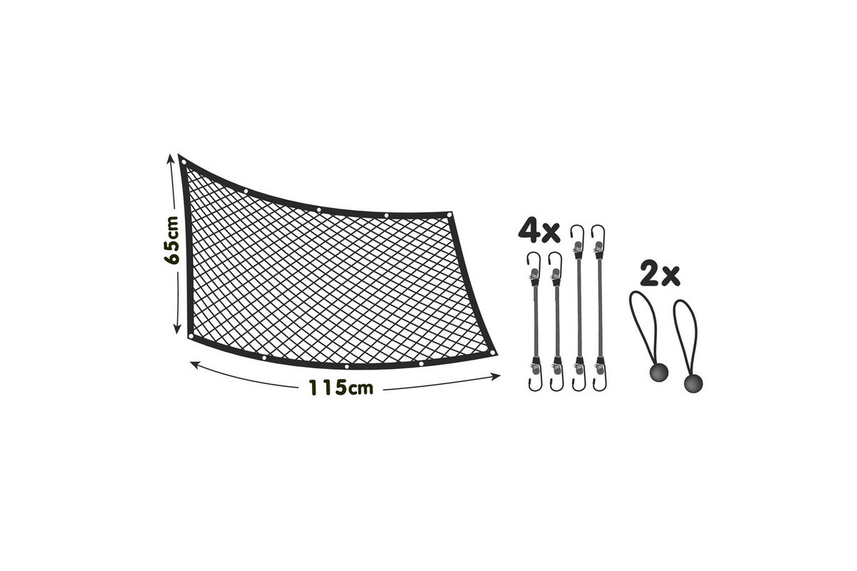 Rozměry zábrany: 115 x 65 cm , takže se hodí do většiny automobilů – od městských vozů až po kombi a SUV. Univerzální design umožňuje snadné přizpůsobení interiéru vozidla výběrem vhodných montážních bodů.