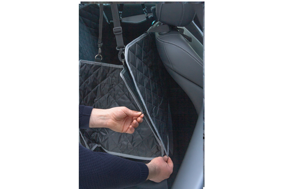 Na zadním sedadle vytváří kryt praktickou „houpací síť“ , která odděluje domácího mazlíčka od předních sedadel a chrání čalounění před chlupy, blátem a pískem. Toto řešení pomáhá snížit rozptylování řidiče a zvyšuje pohodlí vašeho mazlíčka. Síťované větrací okénko zajišťuje proudění vzduchu a vizuální kontakt se zvířetem, zatímco otvory pro bezpečnostní pásy umožňují připevnění postroje. Další kapsy umožňují uložení pamlsků, vodítka nebo skládací misky. Boční kryty se zipy usnadňují nastupování a vystupování a chrání panely dveří před nečistotami a poškrábáním.