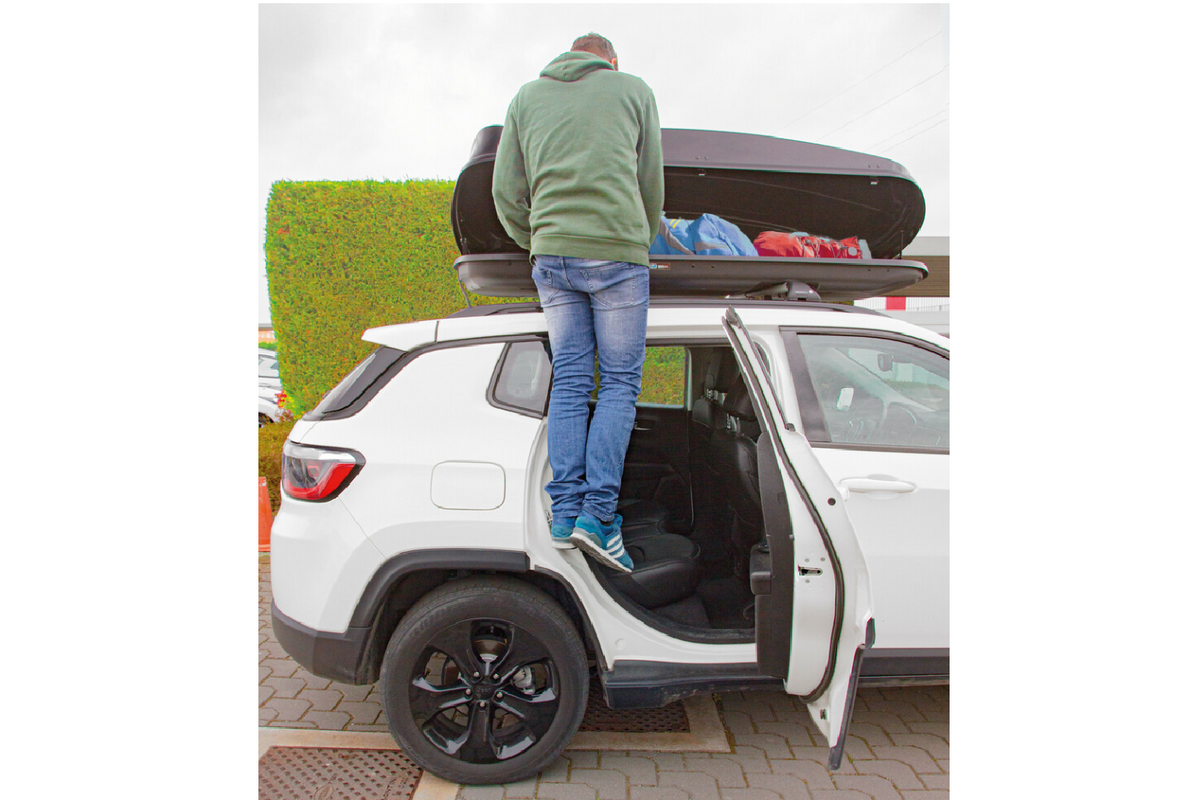 Bezpečnostní schůdek a kladivo 2 v 1 LAMPA usnadňuje bezpečný přístup na střechu vozu bez použití žebříku a v nouzových situacích slouží i jako rozbíječ oken . Je namontován v západce zámku dveří a je užitečný pro instalaci a balení střešního boxu, používání střešních nosičů a mytí/sušení vozu – zejména u vyšších SUV a vozů s pohonem 4x4 .