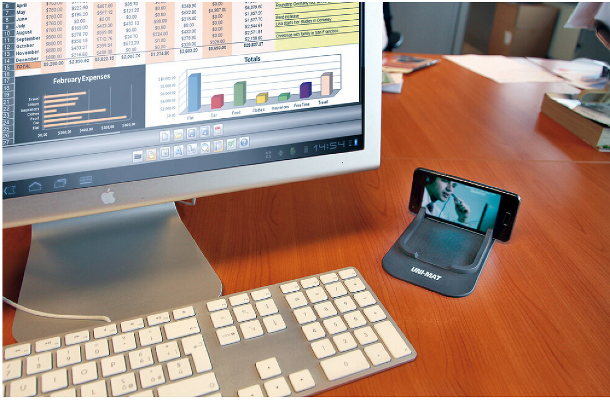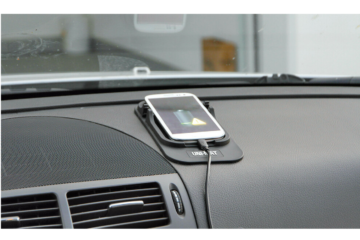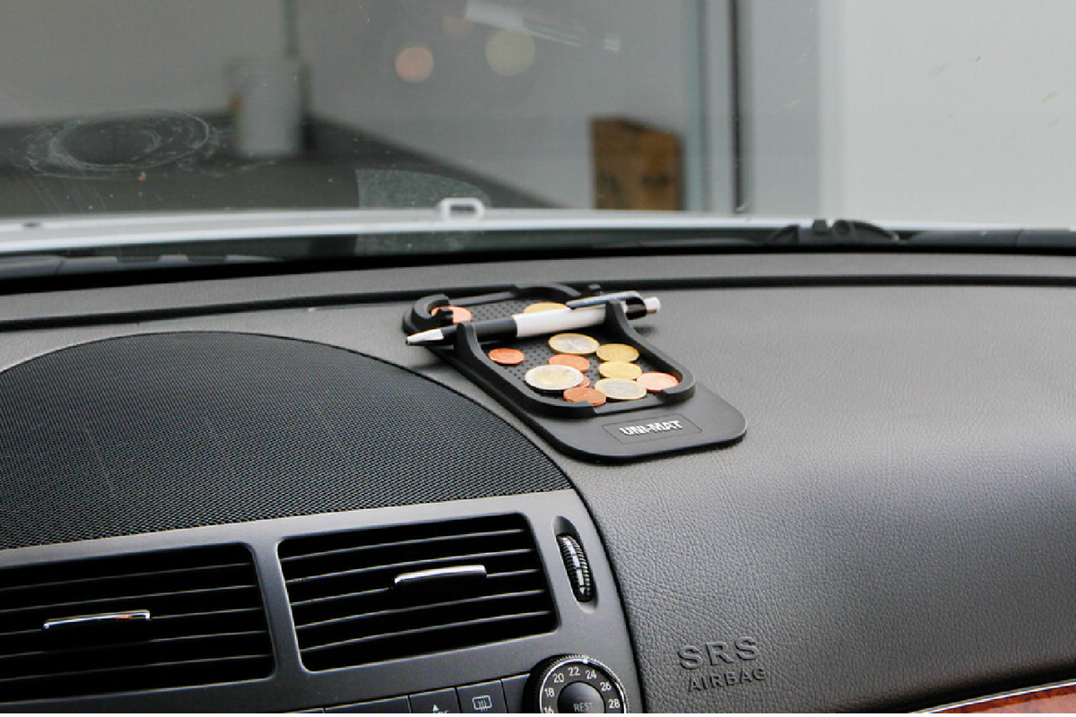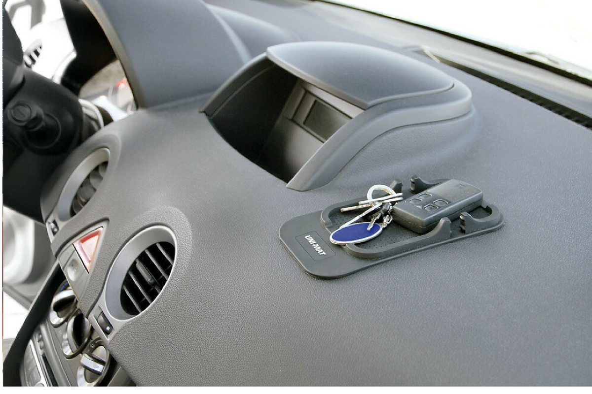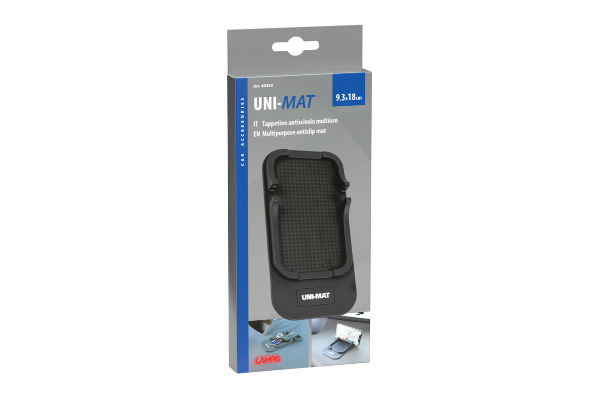 - Protiskluzová podložka Uni-Mat 185x95 mm do auta, domácnosti a kanceláře. Stabilizuje malé předměty, jako jsou telefony, mince a klíče, a její žebrovaný povrch lze použít jako stojánek na telefon. Nevyžaduje lepidlo, snadno se čistí a je opakovaně použite