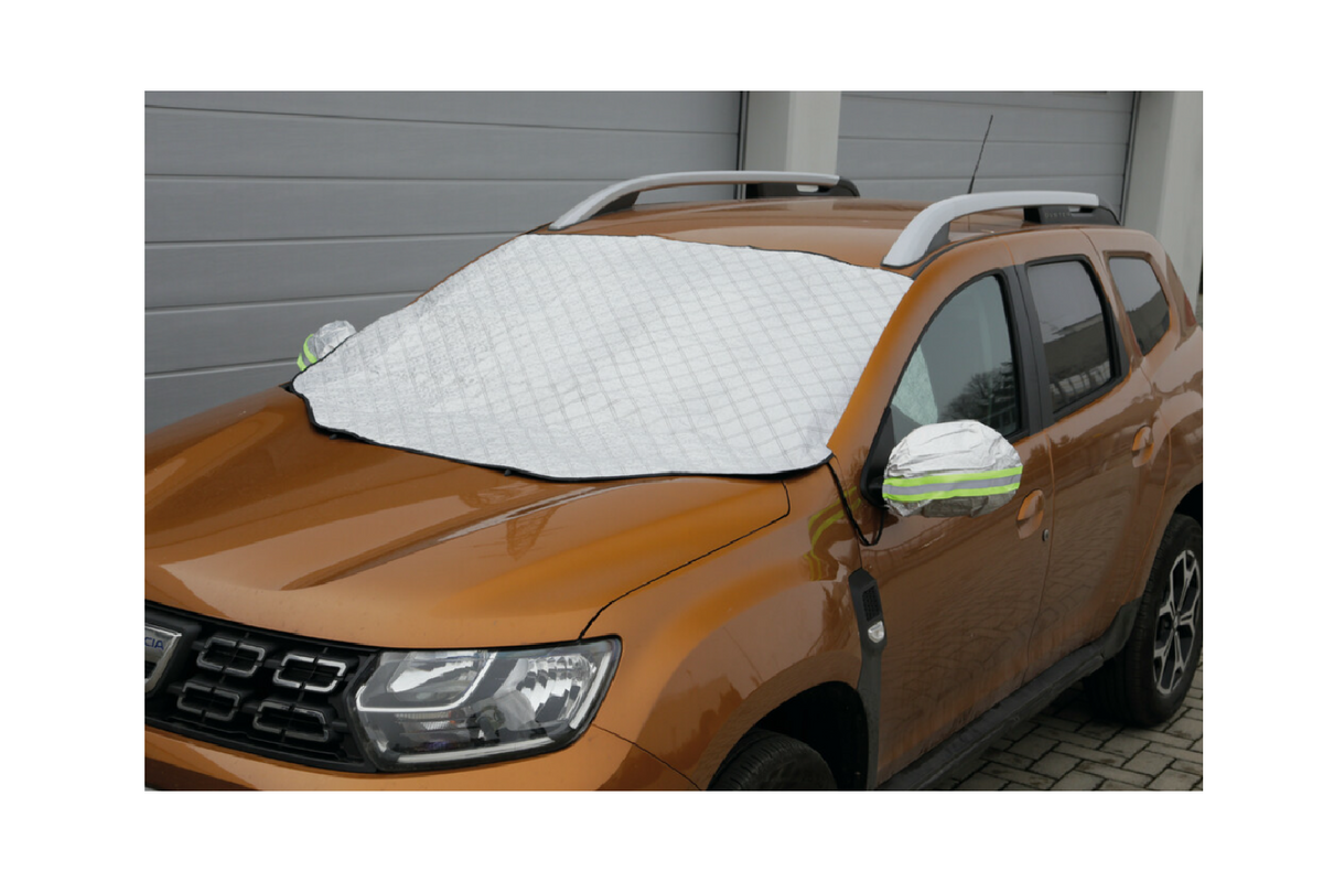 - Tento magnetický kryt na čelní sklo a zrcátko (147/185 × 120 cm) je vhodný pro většinu aut. V zimě chrání před mrazem a ledem a v létě snižuje teplo v interiéru. Účinně také chrání čelní sklo před prachem, listím a nečistotami.