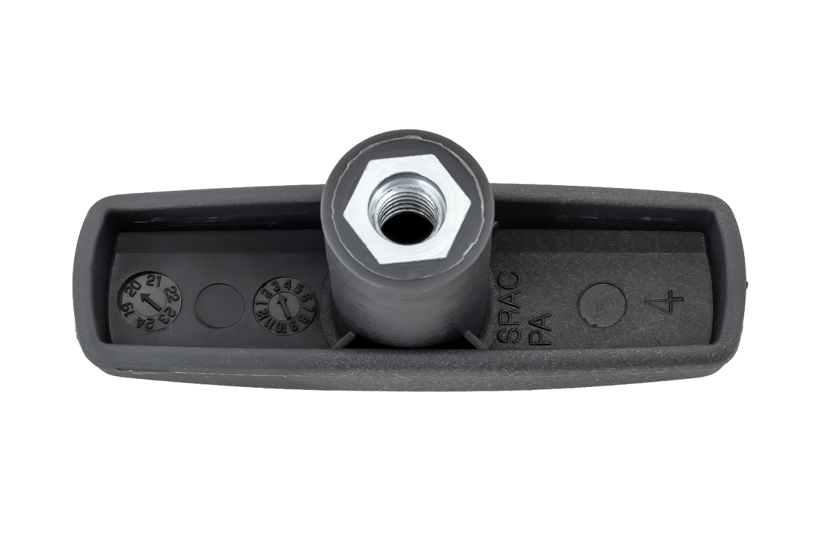 Zajišťovací knoflík pro naklápění nosiče kol Inter Pack Spider je zodpovědný za správné zajištění mechanismu naklápění. Tento prvek umožňuje ovládání funkce naklápění, což se promítá do pohodlného přístupu do zavazadlového prostoru vozidla a stability celého nosiče během přepravy.