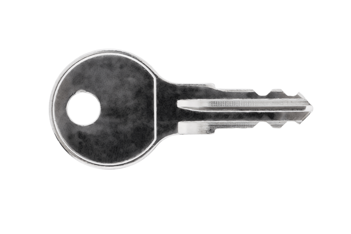 Zestaw zawierający zamek oraz klucz z takim samym numerem do zabezpieczenia platform rowerowych Inter Pack Trio i Quattro.