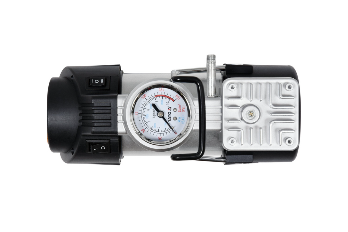 - Autokompresor YATO YT-73460 12V dokáže nafouknout pneumatiky automobilů a jízdních kol, ale i matrace a míče. Vestavěný manometr usnadňuje kontrolu tlaku a LED světlo umožňuje pohodlný provoz i po setmění.