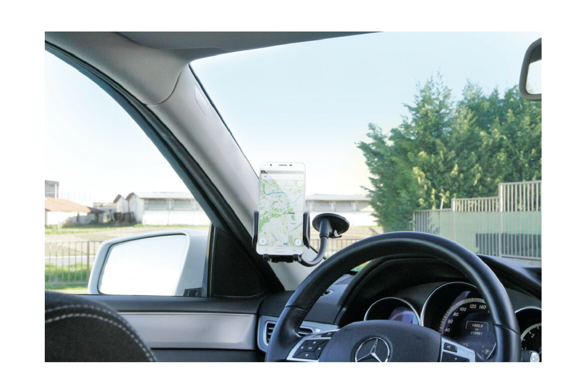 Držák je vybaven silnou přísavkou s lepicí podložkou , která se bezpečně připevní na čelní sklo nebo boční okno vašeho vozu. Flexibilní 20cm rameno umožňuje umístit telefon do správného úhlu, což usnadňuje navigaci a zlepšuje viditelnost obrazovky. Otevřená spodní část umožňuje pohodlné používání telefonu při nabíjení nebo připojování sluchátek .